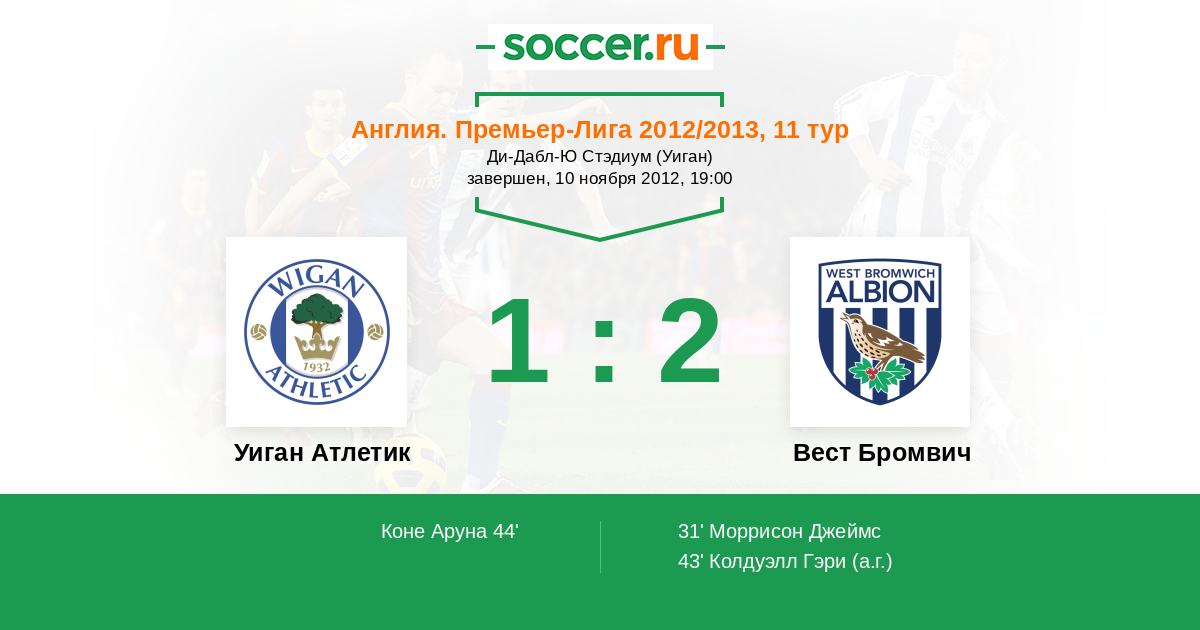 Протокол матча Уиган Атлетик против Вест Бромвич