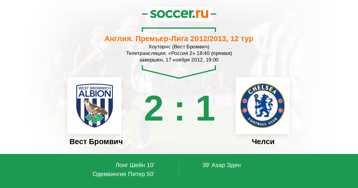 Протокол матча Вест Бромвич против Челси