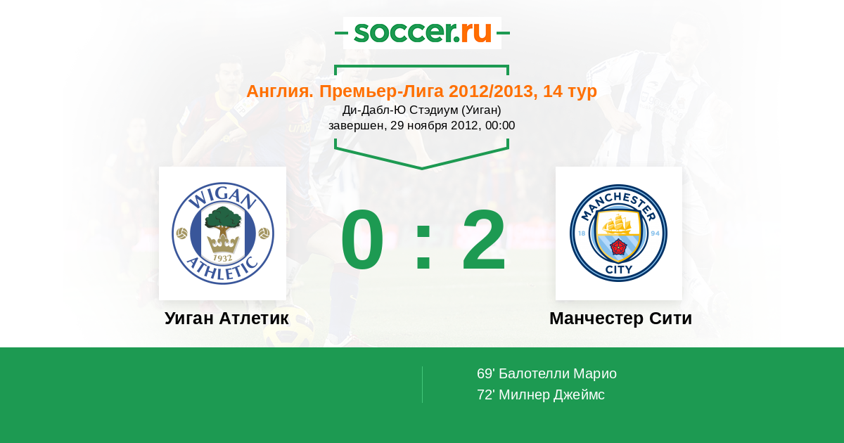 Протокол матча Уиган Атлетик против Манчестер Сити