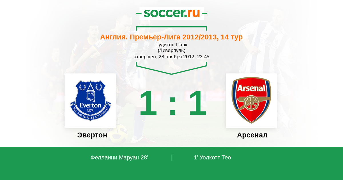 Протокол матча Эвертон против Арсенал