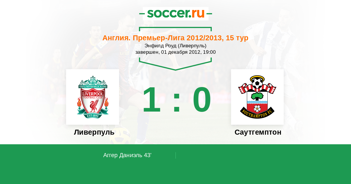 Протокол матча Ливерпуль против Саутгемптон