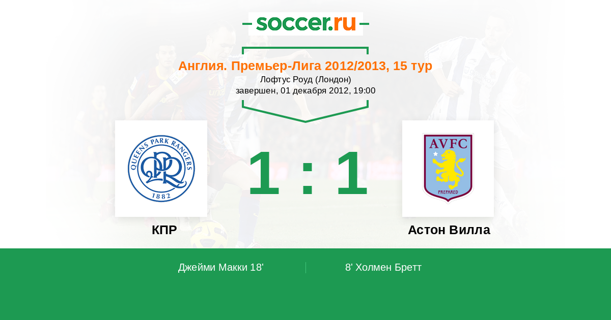 18' (1:1) Джейми Макки (12) (Диаките Самба (2))