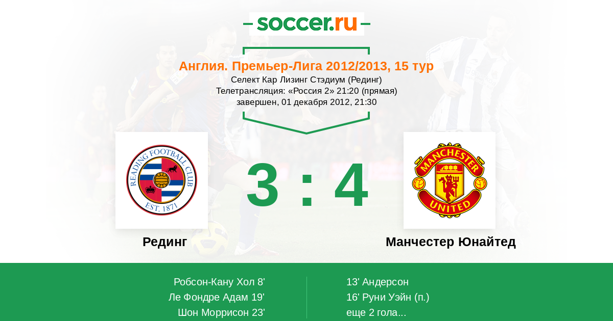 30' (3:3) Руни Уэйн (10) (Эвра Патрис (3))