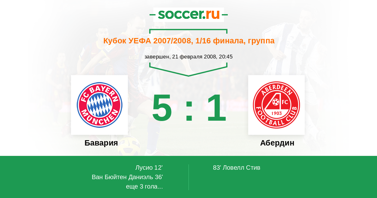 Протокол матча Бавария против Абердин