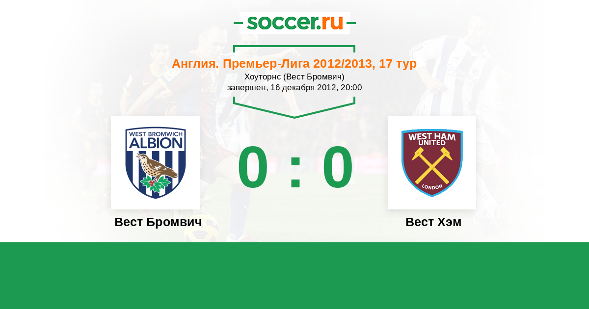 Протокол матча Вест Бромвич против Вест Хэм