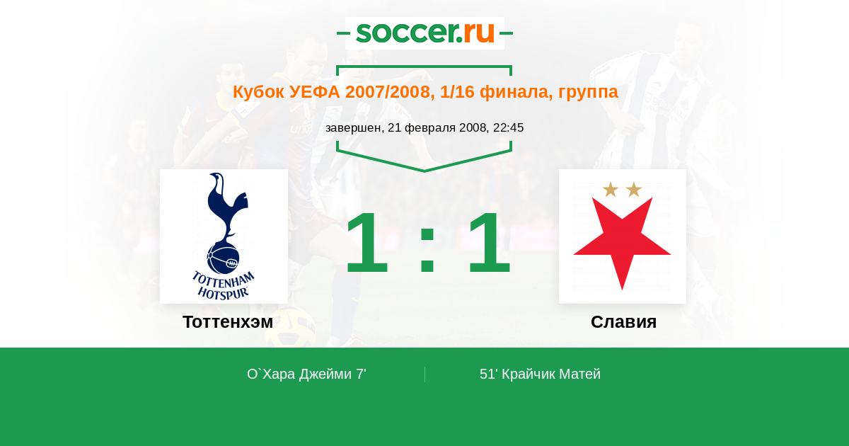 Протокол матча Тоттенхэм против Славия