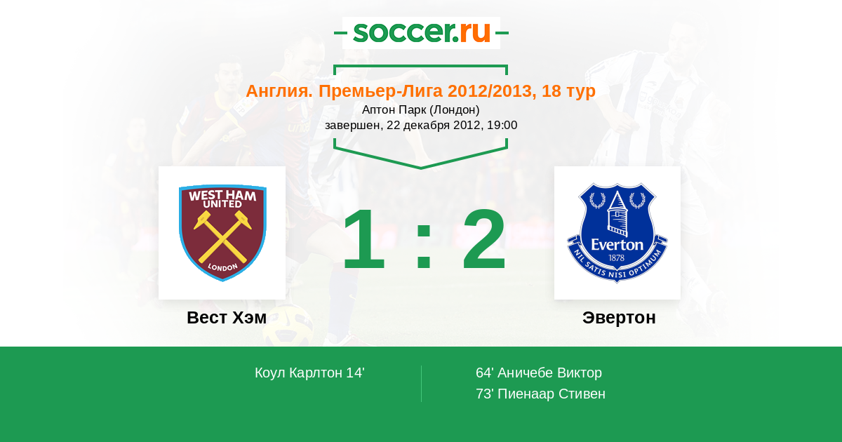 Протокол матча Вест Хэм против Эвертон