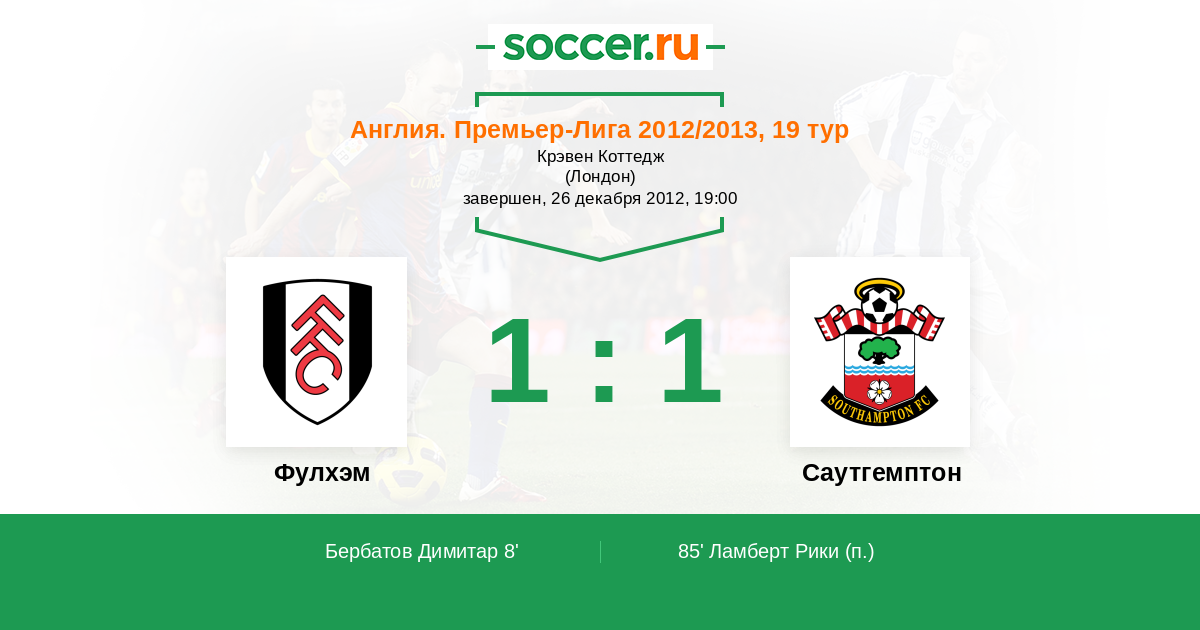 Протокол матча Фулхэм против Саутгемптон