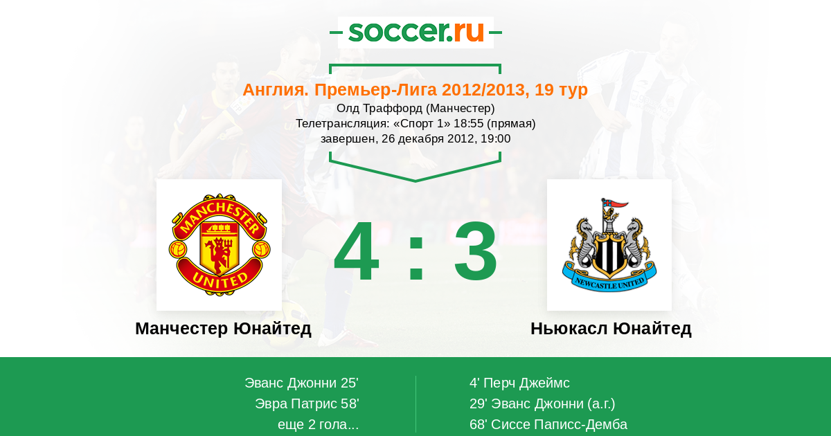 Протокол матча Манчестер Юнайтед против Ньюкасл Юнайтед