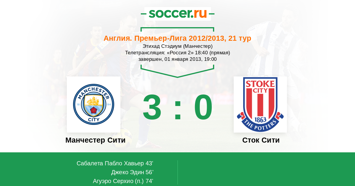 Протокол матча Манчестер Сити против Сток Сити