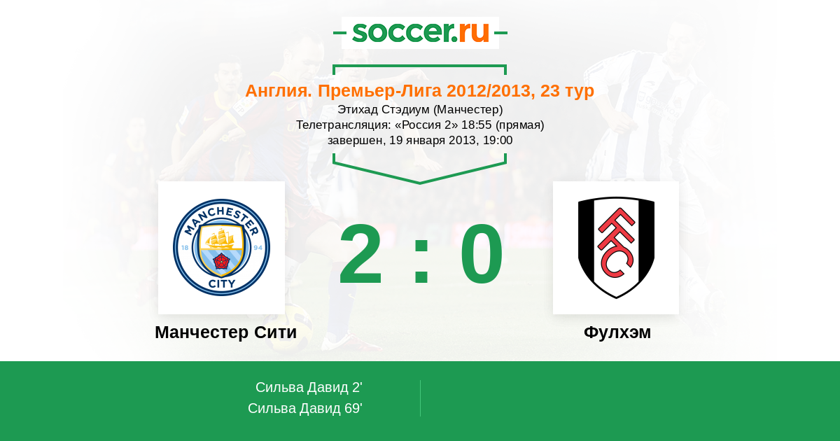 Протокол матча Манчестер Сити против Фулхэм