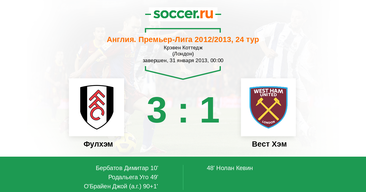10' (1:0) Бербатов Димитар (9) (Дафф Дэмьен (16))