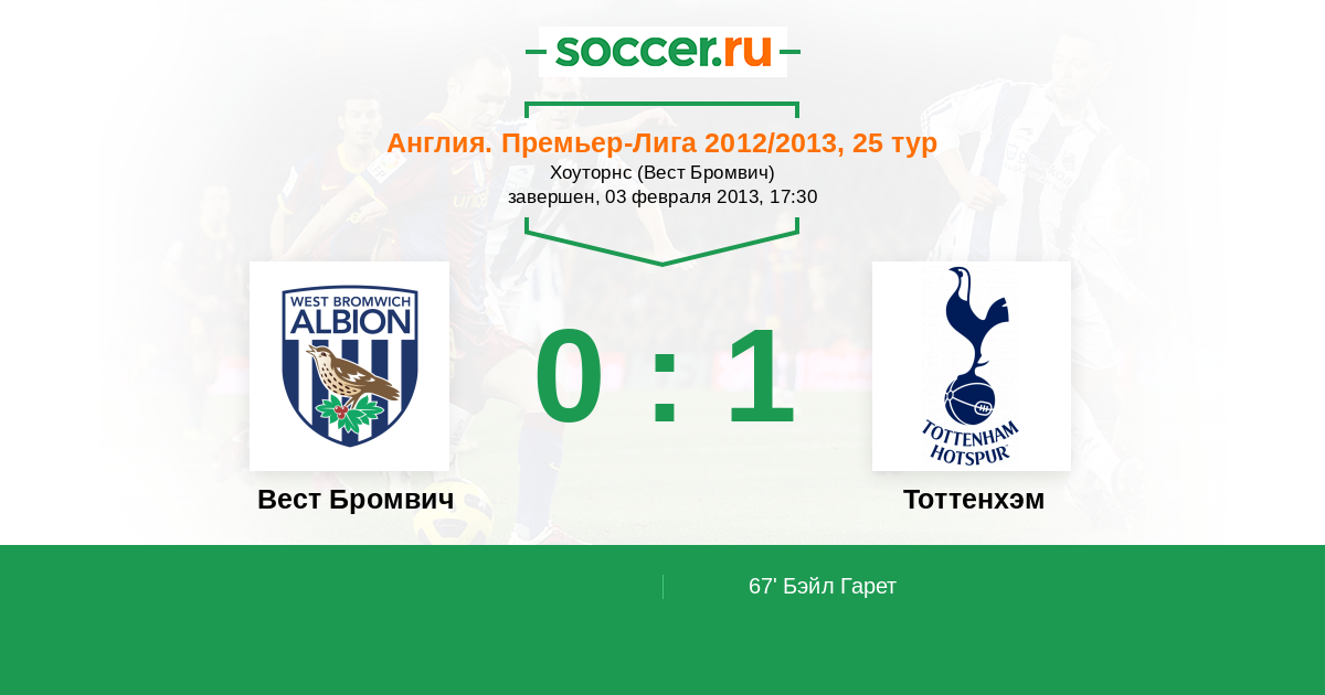 Протокол матча Вест Бромвич против Тоттенхэм