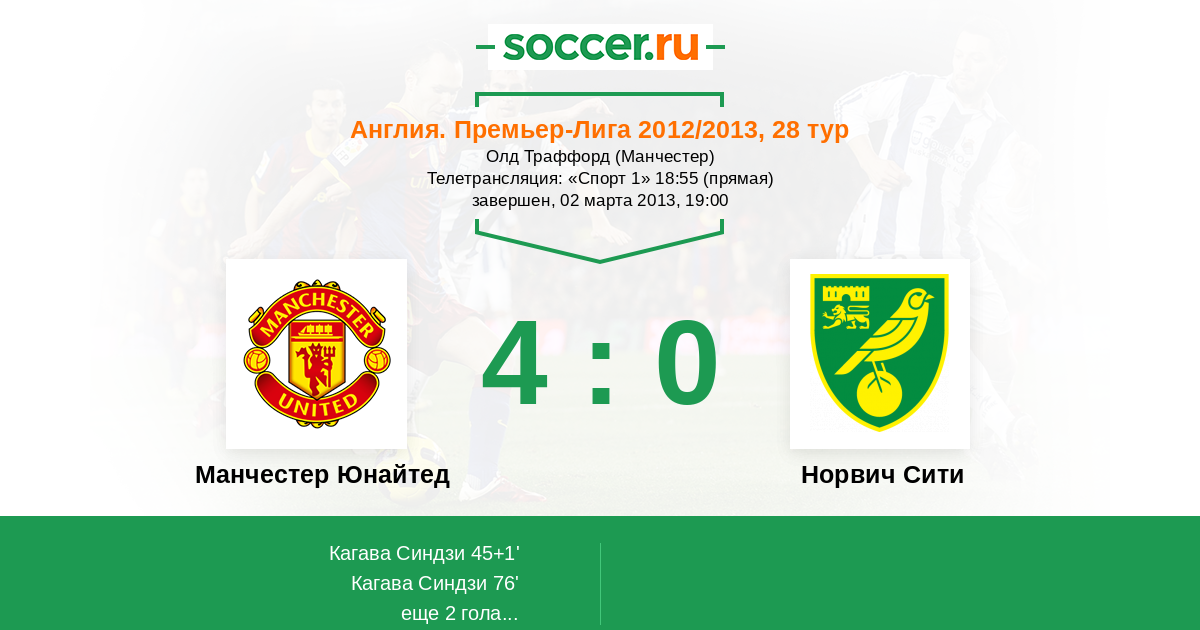 Протокол матча Манчестер Юнайтед против Норвич Сити