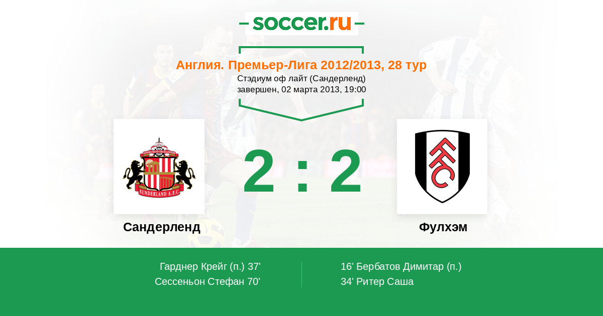 Протокол матча Сандерленд против Фулхэм