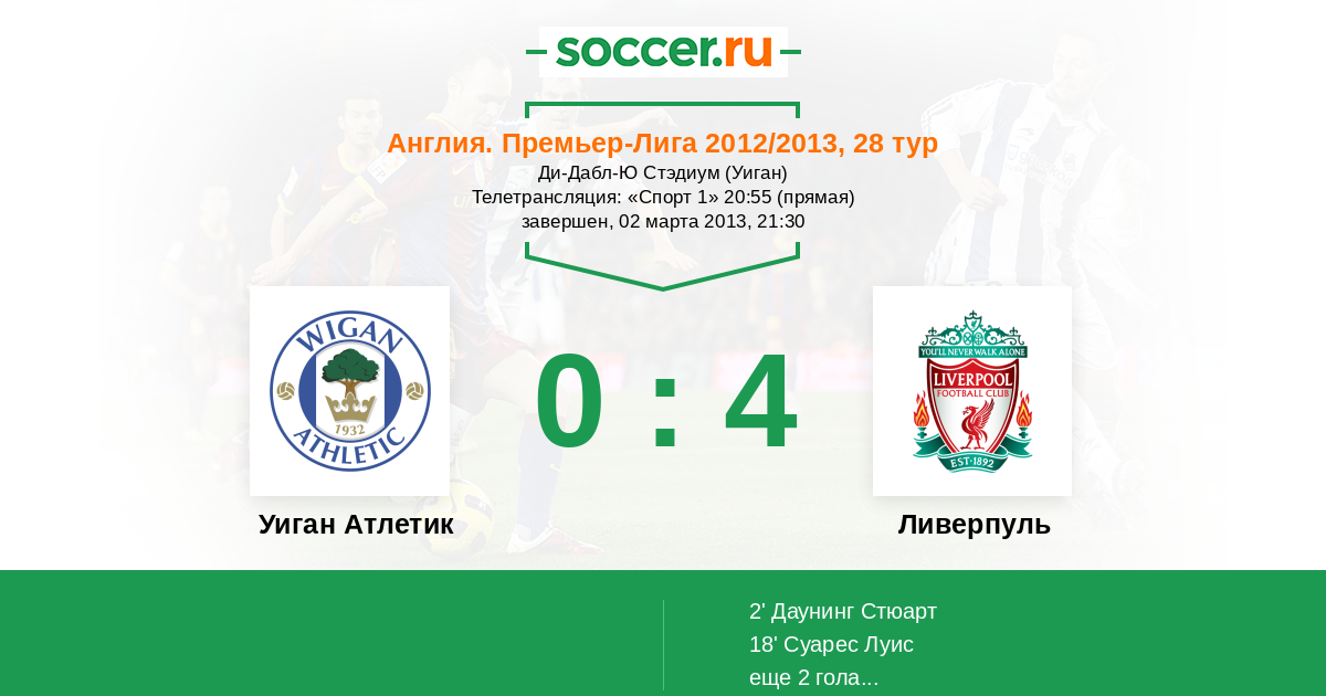 Протокол матча Уиган Атлетик против Ливерпуль