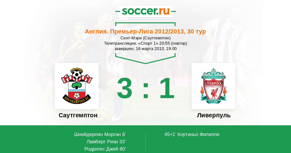 Протокол матча Саутгемптон против Ливерпуль