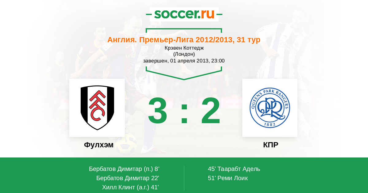 Протокол матча Фулхэм против КПР