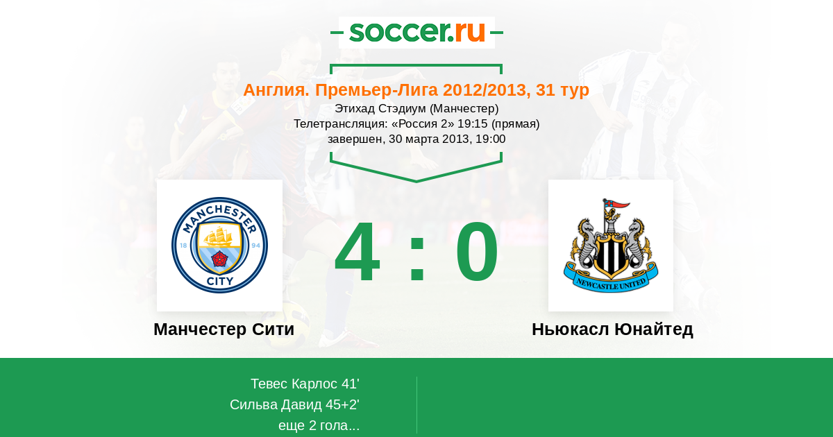 Протокол матча Манчестер Сити против Ньюкасл Юнайтед