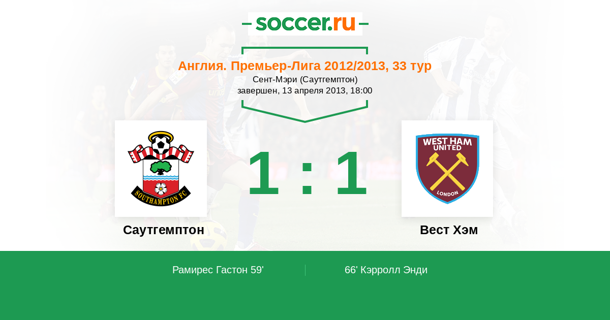 Протокол матча Саутгемптон против Вест Хэм