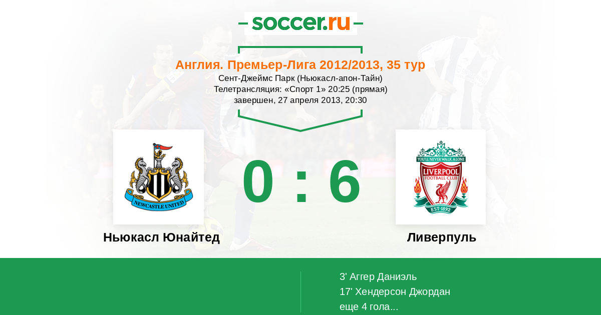 Протокол матча Ньюкасл Юнайтед против Ливерпуль