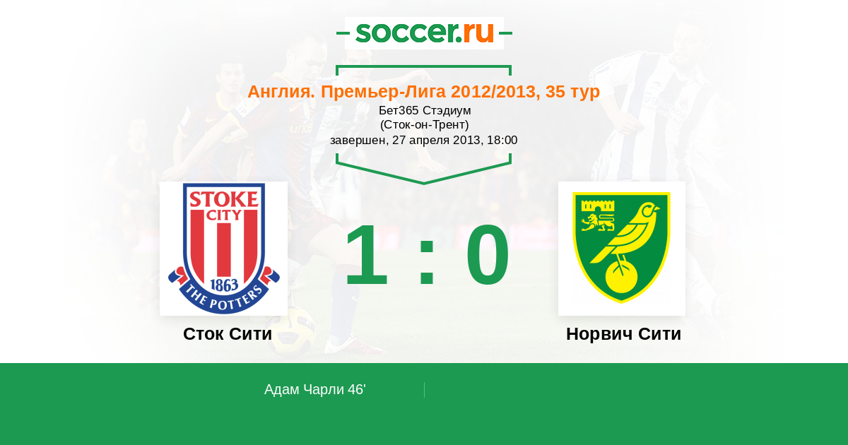 Протокол матча Сток Сити против Норвич Сити