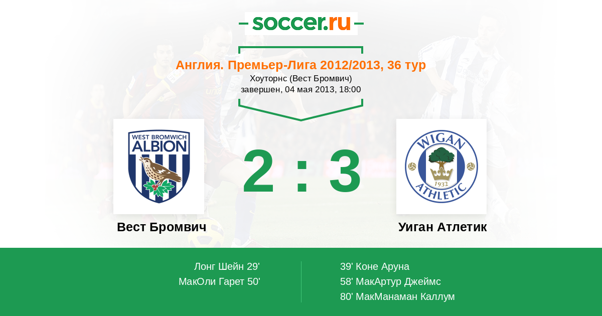 Протокол матча Вест Бромвич против Уиган Атлетик