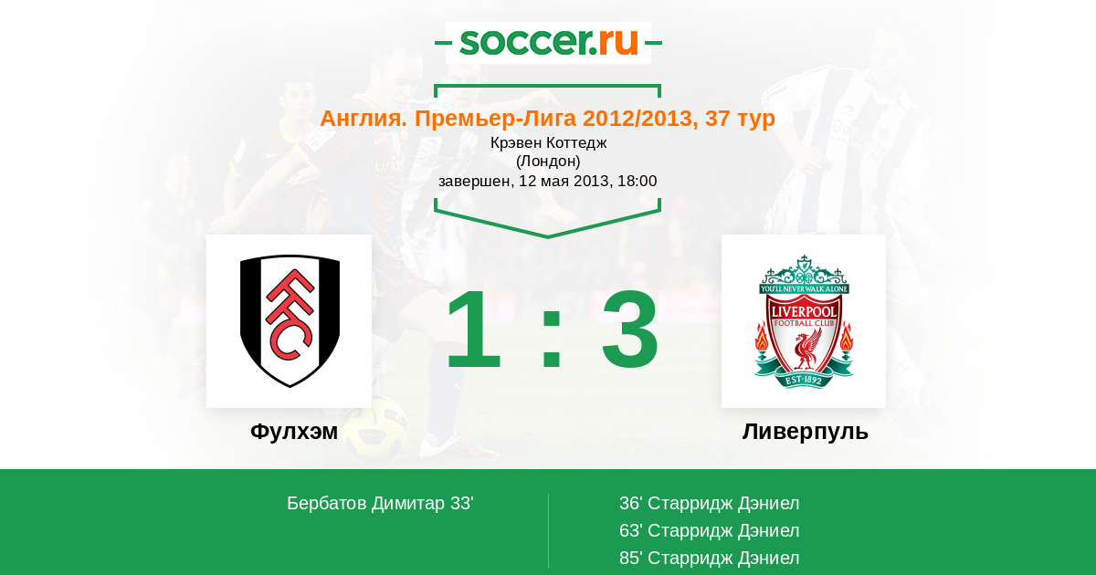 33' (1:0) Бербатов Димитар (9) (Ритер Саша (27))