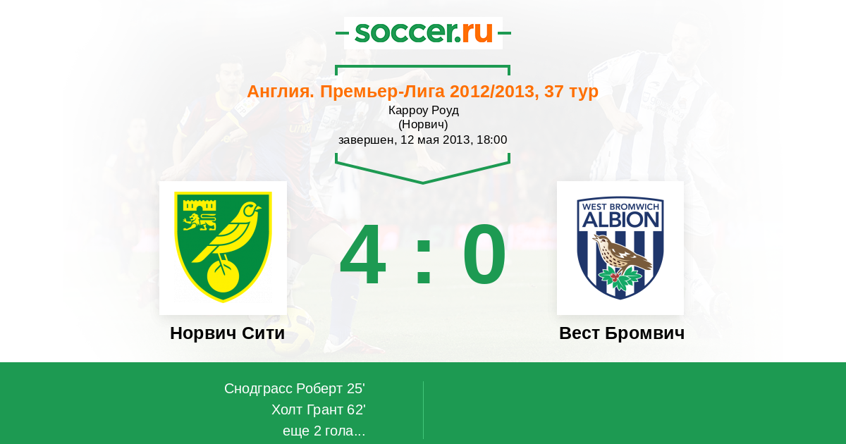 Протокол матча Норвич Сити против Вест Бромвич