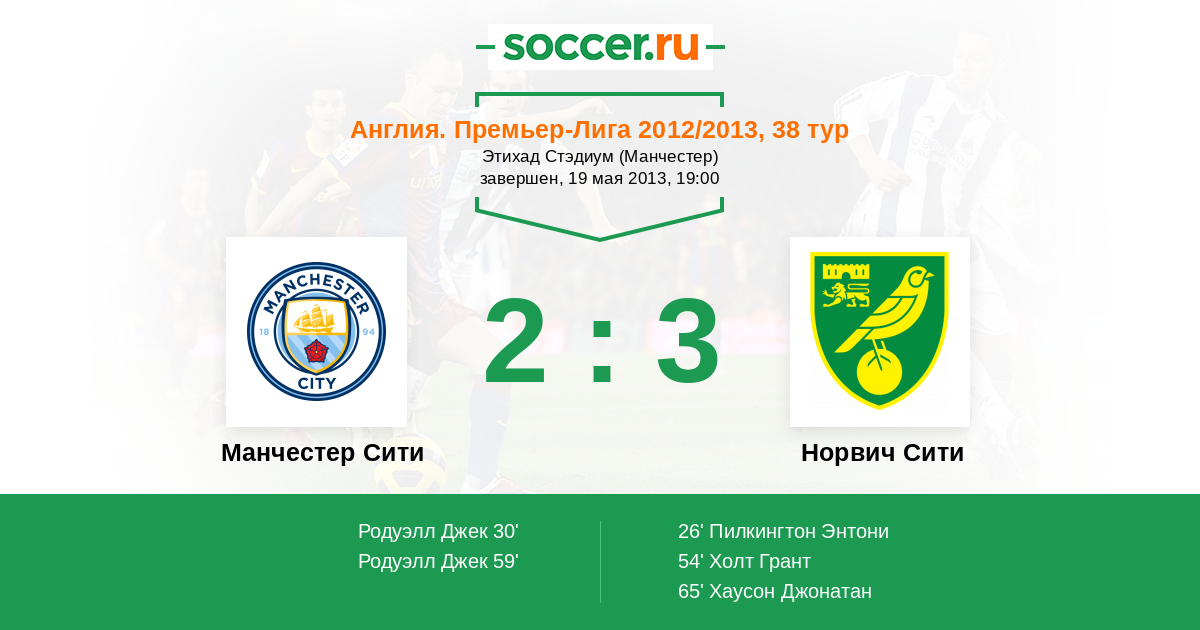 Протокол матча Манчестер Сити против Норвич Сити