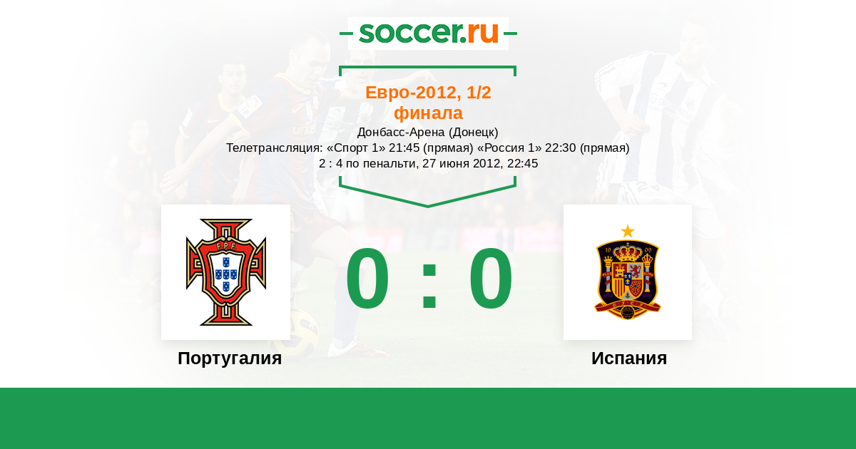 Протокол матча Португалия против Испания