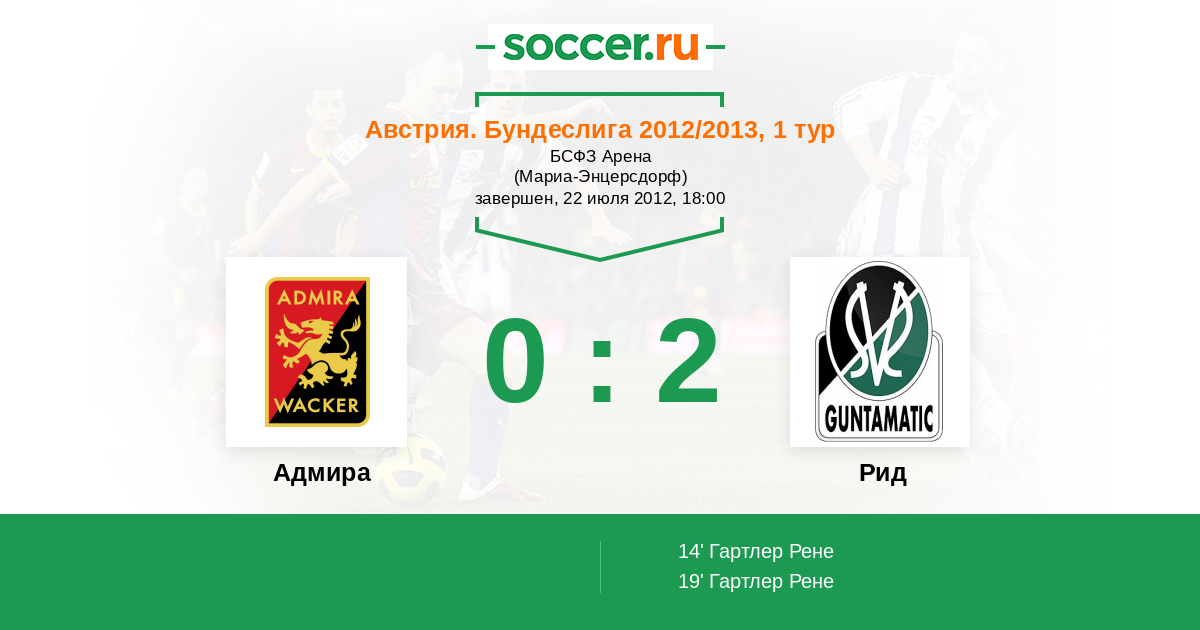 Протокол матча Адмира против Рид