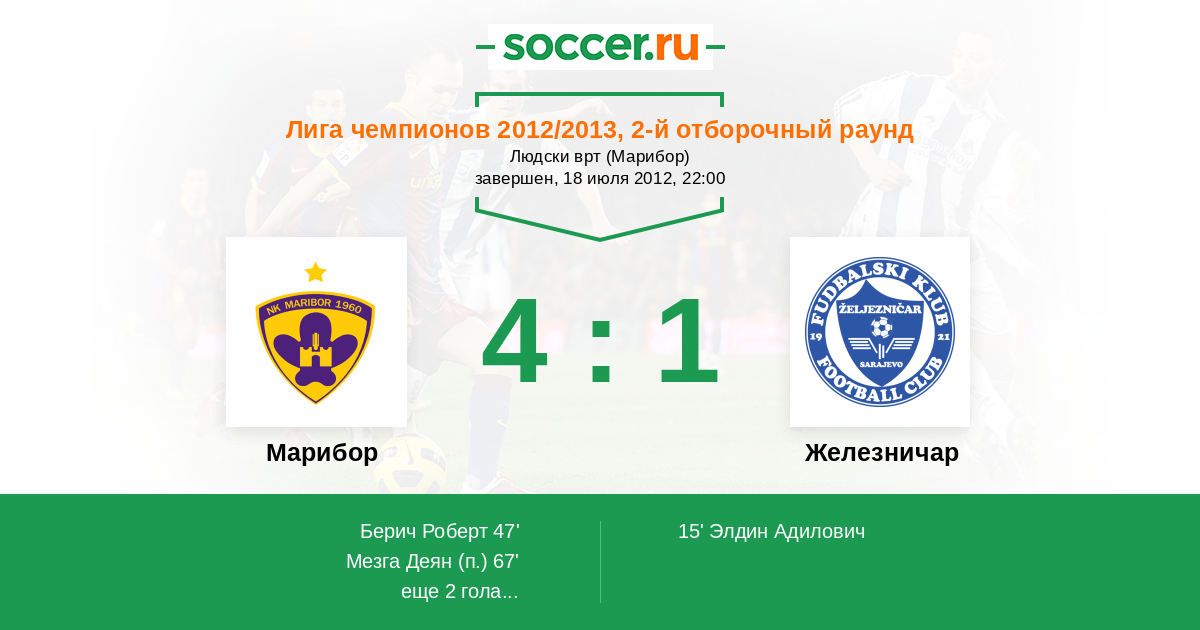 Протокол матча Марибор против Железничар