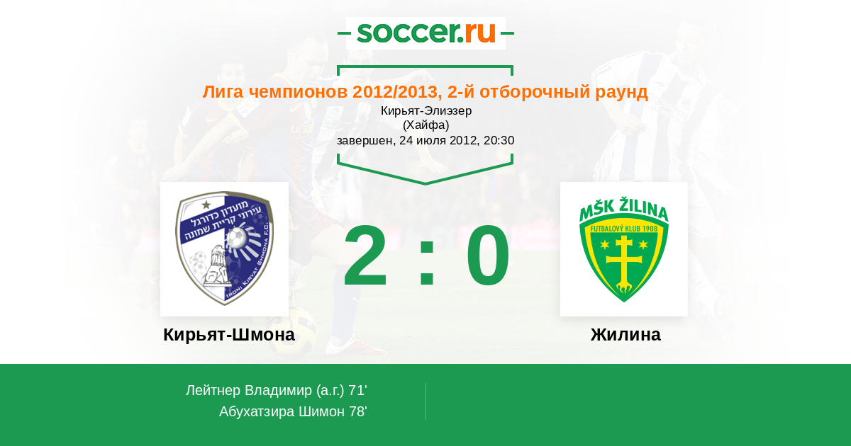 Протокол матча Кирьят-Шмона против Жилина
