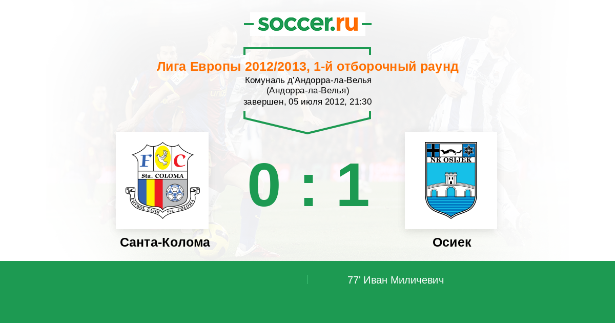 Протокол матча Санта-Колома против Осиек