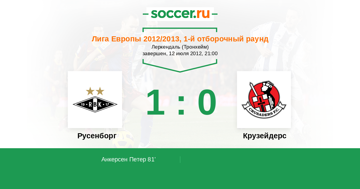 Протокол матча Русенборг против Крузейдерс