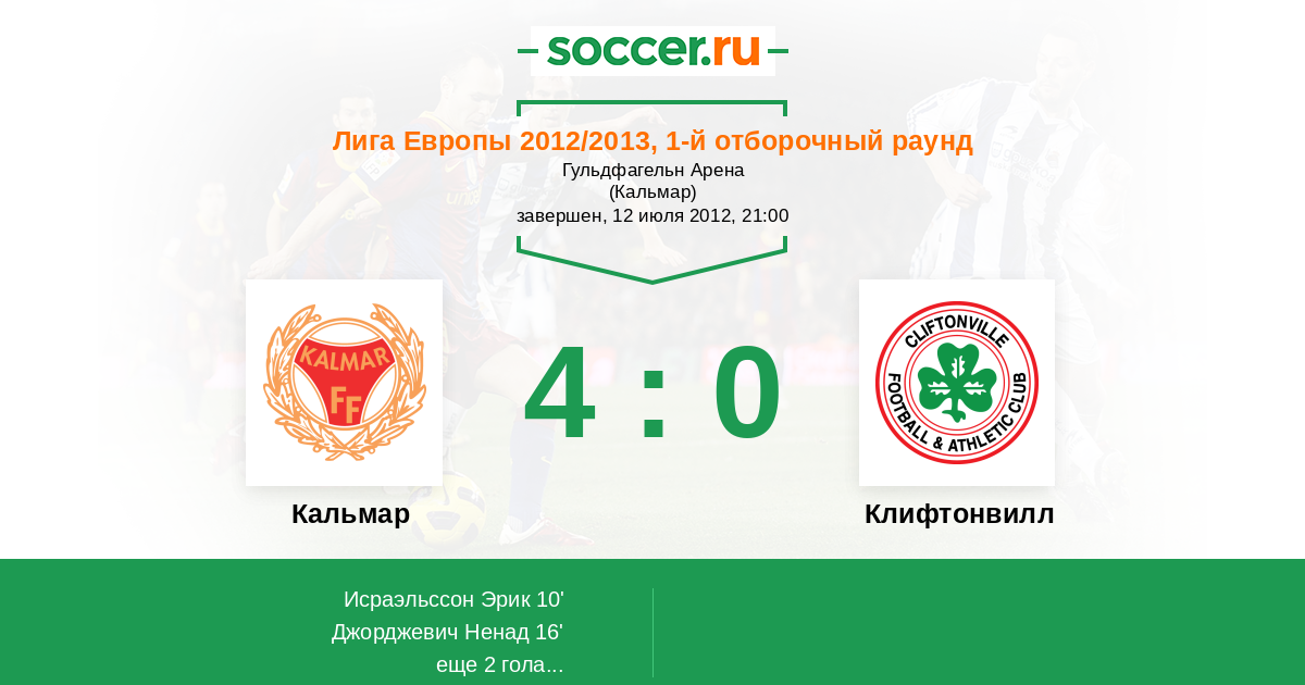 Протокол матча Кальмар против Клифтонвилл