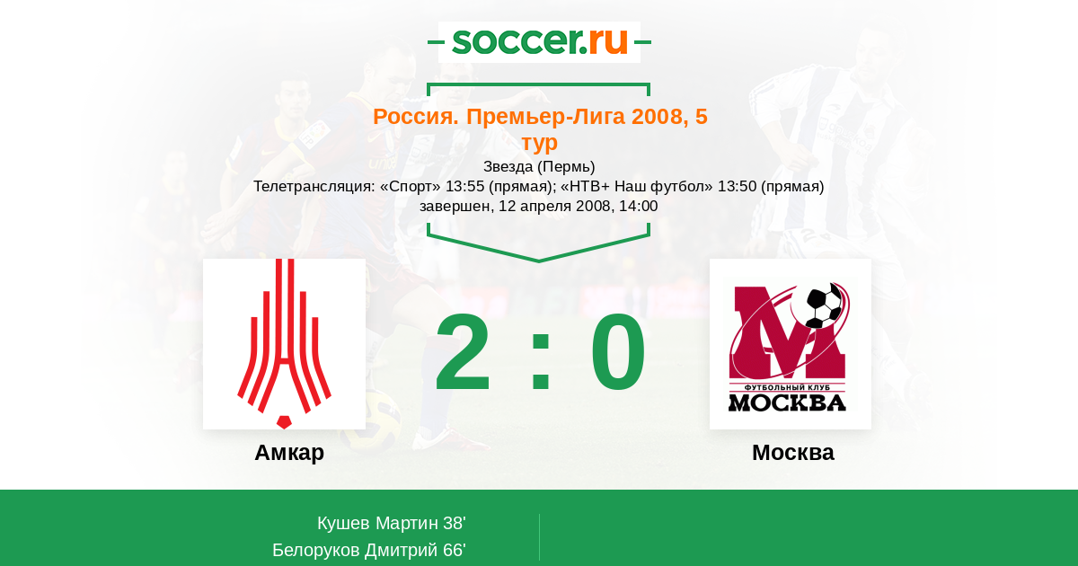 Протокол матча Амкар против ФК Москва