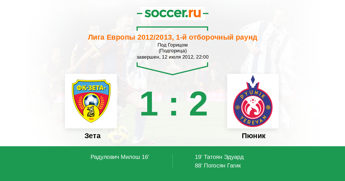 Протокол матча Зета против Пюник