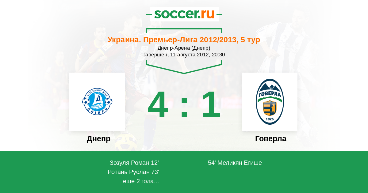 Протокол матча Днепр против Говерла