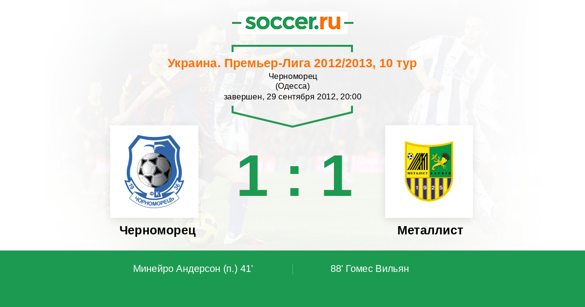 Протокол матча Черноморец против Металлист