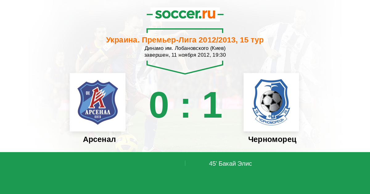 Протокол матча Арсенал против Черноморец