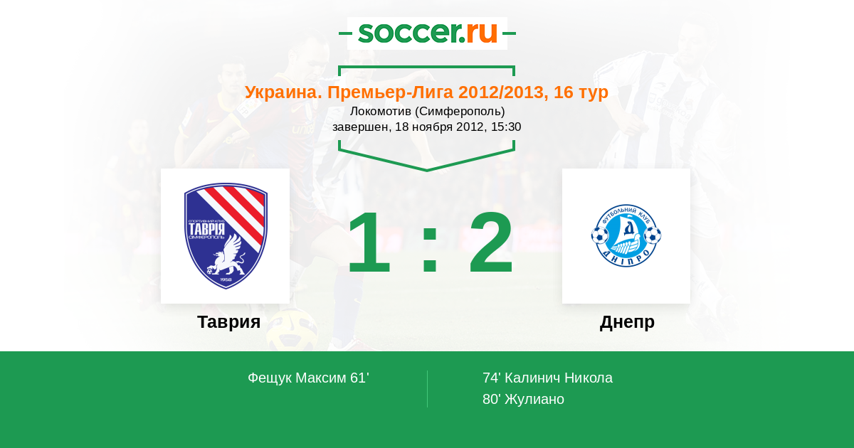 Протокол матча Таврия против Днепр