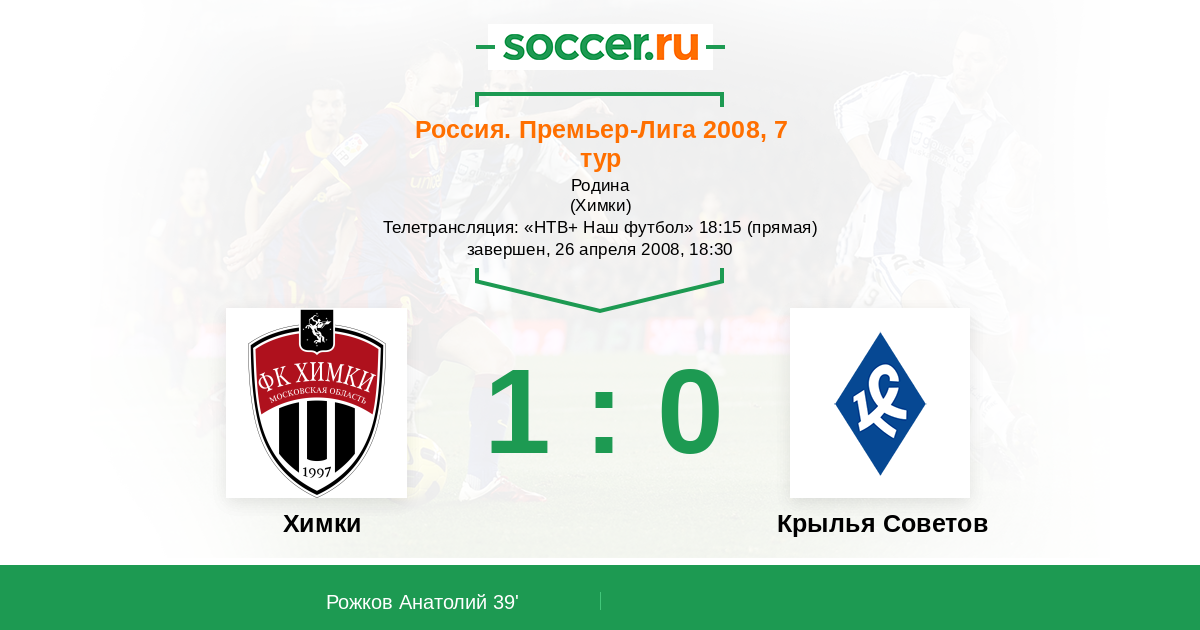 Протокол матча Химки против Крылья Советов