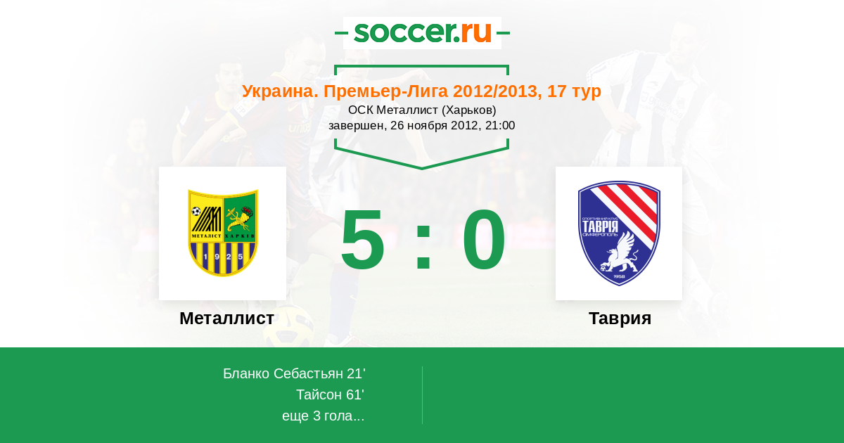 Протокол матча Металлист против Таврия