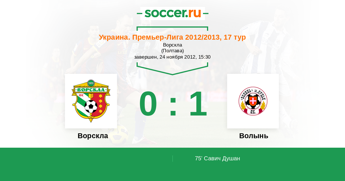 Протокол матча Ворскла против Волынь