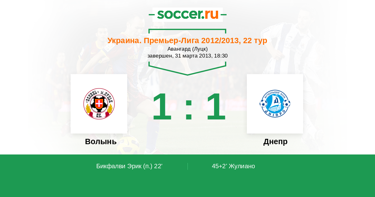 Протокол матча Волынь против Днепр
