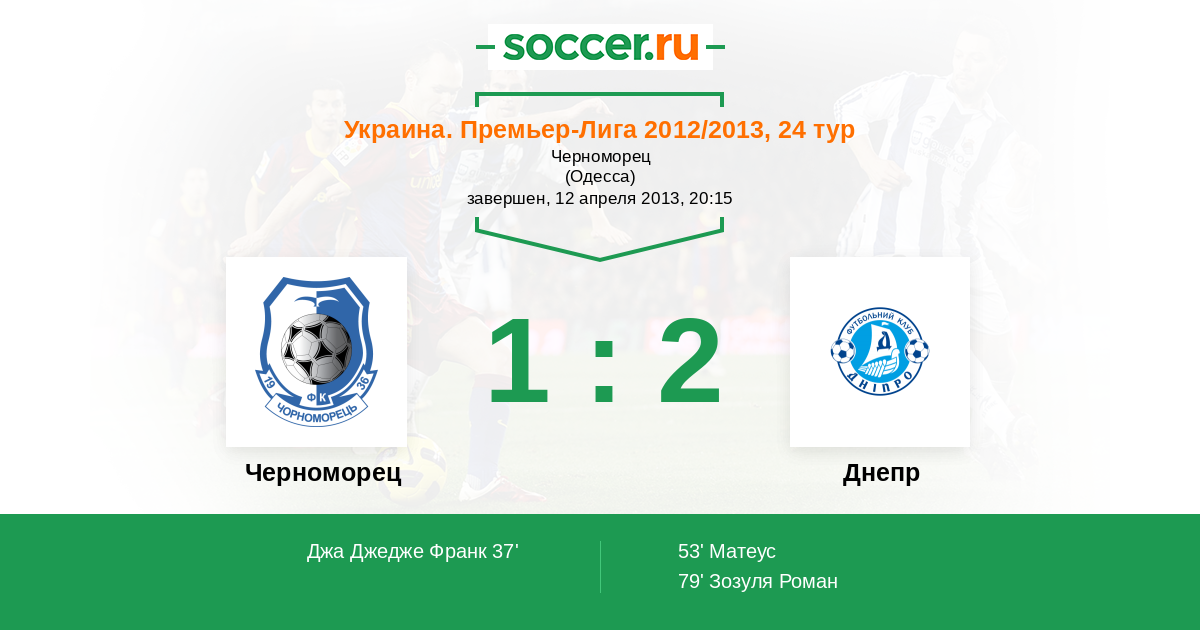 Протокол матча Черноморец против Днепр