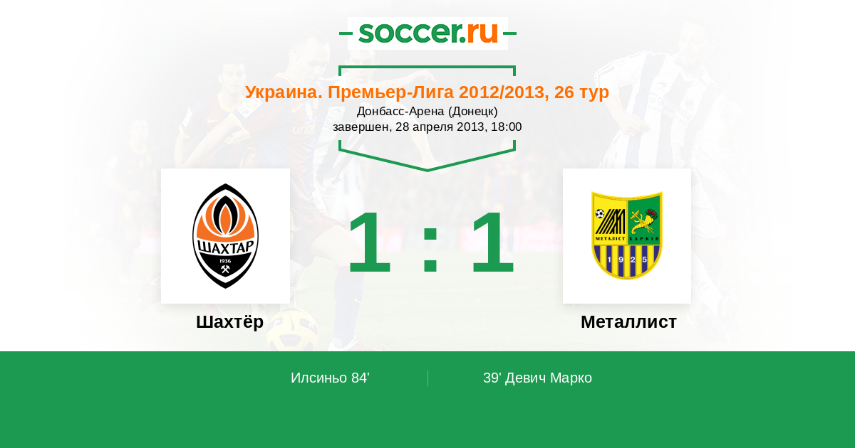 84' (1:1) Илсиньо (77) (Фернандиньо (7))