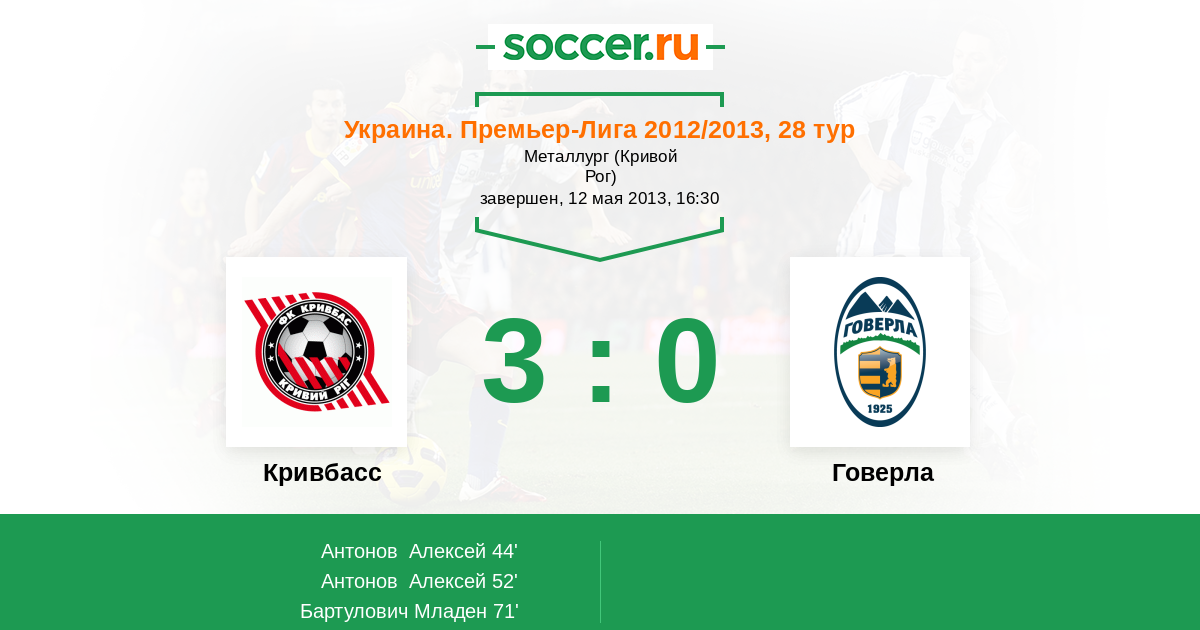 Протокол матча Кривбасс против Говерла